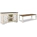 Product 1: QUAINT TV CONSOLE: Elevating the art of traditional cottage styling, this TV stand with two-tone finish and mirrored cabinet doors is sure to serve you beautifully for years to come