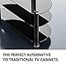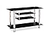 BLACK TV STANDS - Black tempered glass and shiny chrome legs for modern and contemporary look.