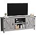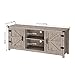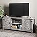 MODERN FARMHOUSE TV STAND – 85 inch console cabinet holds any TV up to 95 inches. Has 11 storage areas with shelves plus sliding barn doors with matte black iron hardware.
