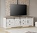 [COTTAGE STYLE DESIGN] Create a charming space with this cottage-inspired TV stand featuring a modern appeal. Elegantly designed corners and a dry finish with custom antique hardware lend a graceful look.