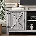 HANDSOMELY CRAFTED: Made of veneers, wood and engineered wood. Plank effect styling. Designed with 4 side shelves, 2 center shelves and sliding barn doors are a trendy look