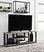 EXOTIC WOOD GRAIN: Light brown decorative laminate with metal frame in satin black finish. Neutral hues let this entertainment unit blend with other pieces such as a table or cabinet or console