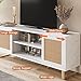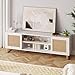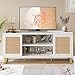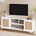 ✓ MODERN TV STAND: This white entertainment center is designed with a combination of modern and sleek boho-chic styles. Embellished with natural rattan, the clean-lined, scientific, and rational layout ensures ample storage space, making this entertainment tv center console table not only elegant and beautiful but also highly practical. The mid-century modern tv stand can perfectly match any style of room decor and is perfect for a living room, bedroom, or as storage cabinet in the kitchen.