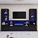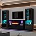 【Modern TV Stand】Wood TV stand is synonymous with trendy design elements, built-in 16 adjustable lighting, with 4 flashing effects, glass shelving and open storage space.
