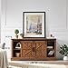 ROOMY AND MULTIFUNCTIONAL:Each cabinet has one shelve adjustable with 3 heights to fit for items with different sizes,providing customizable organization for media, electronics, accessories, books, or decor.Top Semi-open shelf for sound bar storage.Four pre-punched large cutouts help to keep wires free of clutter.Sliding barn doors on the TV stand for convenient access to cabinets while space saving. You can also choose to slide the door to any side of the TV console for a clean, organized look. It can work as a TV stand in your living room, a storage cabinet in your bedroom, or a buffet in your kitchen or dining room cabinet in the bedroom.
