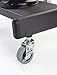 Locking casters stabilize the fixture and allow for the rolling TV stand to become mobile.