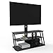[STURDY CONSTRUCTION]: Made of sturdy bamboo with an attractive black finish that blends easily into any room décor, this space-saving swiveling TV stand with shelf keeps screens steady and easy to maneuver. No drill needed for this TV mount.