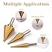 【Double Flutes & Tri-Flatted】:These drill bits feature a special dual flute straight design for dependable performance and durability. And the shanks on these step drill bits have three flats that help prevent the bits from slipping in the drill chuck during drilling