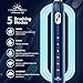 【5 Cleaning Modes and Tongue Scraper】 - 5 comprehensive cleaning modes to suit all oral cleaning needs(WHITE, CLEAN, SENSITIVE, POLISH and MASSAGE). The stainless steel tongue scraper keeps you away from stains and spruces up your taste buds. The 'U' shaped curve is flexible enough to twist and turn, scraping all the corners of your tongue.