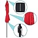 Solar LED lights: The outdoor half umbrella has 15 LED lights to illuminate your space at night. Sunlight is collected through the solar panel on top of the umbrella, and the LED lights located on the ribs of the umbrella are operated by a switch on the pole. The solar lights require 5-6 hours of direct sunlight to fully charge and will operate for approximately 4 hours.