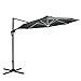 Weather-Proof Canopy for Large Shade: The 10ft cantilever umbrella comes with a large canopy that offers 80 sq.ft sun shade and is made of durable 180g polyester. So it shows great sun protection & drizzle resistance. Plus, the 2-tier top offers accesses where air can pass smoothly to bring fresh air & get rid of heat. Note: do not use it in extreme weathers, like heavy rain, snow, typhoon, etc.