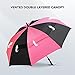 60 in Double Layer, Vented Mesh Canopy: Prevents the windproof golf umbrella from inverting during huge gusts of wind with a vented mesh canopy that allows a passageway for wind coming from underneath the canopy, preventing a parachute effect. Large oversized canopy measures 60 inches. Wind resistant, waterproof, lightweight