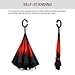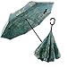 Unique Inverted /Reversed/ Upside down Folding Design: This automatic /upside-down umbrella takes an inside-out design. When close it, the wet part will be inside of the umbrella, preventing water from dripping, and it will not get yourself wet when getting in and out of the car, which prevents water from dripping, keeping floors and cars dry.
