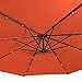 Light up the night: The umbrella features a solar panel on top, and has 3 LED solar lights on each of the 8 ribs, operated by a switch hanging from one of the umbrella ribs; LED light has a 12000mcd brightness with a Kelvin color temperature of approximately 3000K; Can be easily adjusted via the cantilever and crank; Plus, the air/wind/heat vent on top ensures it will be more stable in the wind and cooler in the heat