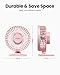 【Handheld/Desktop Fan with Mirror】:Versatile Design, this mini portable fan can be used as a handheld fan when outdoor and used as a mini desk fan on a flat table when in the office, open the flip cover, the built-in mirror also makes it a great tool for makeup touch-ups, making it an essential item for the summer.