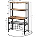❤️【High Quality & Sturdy Construction】This wine rack cabinet is made of high-quality MDF and black reinforced metal frame, this utility storage shelf offers a large weight capacity. The wine bar cabinet can bear 200lbs. 4 adjustable feet ensure the standing kitchen rack stays stable on carpets or uneven floors. This kitchen baker's rack comes with an adjustable grid board for wine, beer, and other bottles, which allows you to move 10 hooks freely to hang kitchen mitts or other utensils.