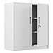 VERSATILE FUNCTIONS - This small storage cabinet offers you plenty of secure space for you to organize household items, office supplies, tools and can food, it can be used in office, garage, living rooms, kitchen pantry, utility room, or anywhere in space needs to get de-cluttered
