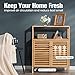 【Towering Storage Cabinet】: Our bamboo bathroom cabinet is designed with a bit height on the overall altitude and the shelving gaps, which enables you to place tall decorations and ornaments as well as fetch your things without bending over often. Besides, the 2 capacious open shelves also have you access to items quickly.