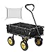 Professional Black Multipurpose Folding Wagon: Extra-large, heavy-duty all-terrain folding utility wagon with a hefty load capacity and a high weight capacity of 150 lbs. (70 kg). It has a heavy-duty tubular steel frame, and the cart basket is made from a durable 600 denier polyester fabric that is removable for easy cleaning.