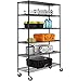 UPDATE and OPTIMIZE - A lot of customers who bought our 5 tier wire shelving rack want to make the rack higher, so we have developed a new shelf which are 72 inches height and have 6 tiers, create a lot of storage space in kitchen, office, garage, bathroom and more. We also replaced 2 shelves with 2 baskets to let you store slippery or round things, makes you more convenient in bathroom and kitchen.