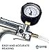 Easy-to-use: Instruction manual included; Includes a variety of adapters ideal for most vehicles; 4-inch (10.2cm) diameter pressure gauge with color-coded measurement scales, 1.2-inch (3cm) thickness with rubber side notches, easy to read and grip; Extra-long rubber hose and 14mm/18mm manifold adapter; Rubber hose 40 PSI (2.8 Bar) maximum working pressure