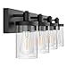 Unique Design :Made of its elegant rustic black metal finish, a cool rectangular base design and high end 4 side clear glass shades of the 4-light wall sconces, which is like 4 shinny gems gleaming in your house, To install this black vanity light can be exquisite home decor to bright up your house and your life.