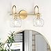 ❰Gold Bathroom Light Fixture❱ This 2 light bathroom vanity light has a eye-catching design. Noble Golden Plating and clear globe glass shade, the gold vanity light fits any style, from modern to rustic. Put this 2 light vanity light in your bathroom, living room, bedroom to create a beautiful lighting atmosphere.