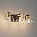 [Unique Design]:The matte black finish lamp body with antique bronze finish light head vanity lighting fixtures is made of high quality baking varnish metal,anti-rust and won't fade.Encased in attractive clear glass globe maximizes light output for an optimally bright ambience,and will add a modern chic element to your spaces with its gold hues.