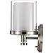 IDEAL FOR bathrooms, bedrooms, hallways, and more, this transitional wall light has a satin nickel finish with white frosted glass shades