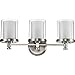 TODAY'S STYLE: Versatile, transitional style with cylindrical white opal etched glass shades for comfortable, flattering illumination