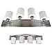 ETCHED GLASS SHADES: Six cup-shaped etched glass shades emit a restoring glow to turn your bathroom into a tranquil a journey of rejuvenation.