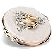 Travel, compact mirror is made of metal with hand-painted enamel coating encrusted with tiny little jeweled crystals and beaded pearls
