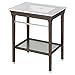 Cultured marble top is finished in white on white and complements subdued finishes such as oak