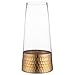 Golden hammered base combined with clear glass adds visually striking contemporary accent to a wide range of decors