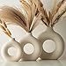 VASES FOR DECOR - material: 100% ceramic vases matte finish. Medium size: 19cm*18cm*3.5cm/7.5inches*7inches*1.4inches, large size: 23cm*21.5cm*4.5cm/9inches*8.5inches*1.8inches, small size: 14cm*15cm*3cm/5.5inches*5.9inches*1.2inches. Shape: donut doughnut circle with hole round. Color: White/off white