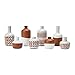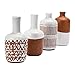 8 white and terracotta painted stoneware vases with varying geometric detail in split finishes