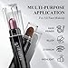 【2 IN 1 Eyeshadow Pen】Portable eyeshadow pencil lets you makeup outside so easily. Combines an eye shadow and eye liner all in one, lt comes with a pencilsharpener, which is convenient and practical.
