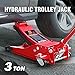 Hydraulic trolley floor jack is constructed with heavy duty steel, providing long term durability with an industrial luster