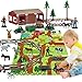 SUPER VALUE: This dinosaur track toy set includes 120 flexible tracks, 2 dinosaur cars, 1 slide, 1 rotary tower, 1 tunnel, 1 dinosaur head, 2 big dinosaurs measure 6-7 inches long and 2-3 inches high, 1 Y-junction, 1 automatic U-turn station, 1 road sign set, 4 trees, 1 ball, 4 tires. More accessories allow your kids to play in more different ways.