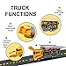 PUSH AND GO MECHANISM CONSTRUCTION TRUCK TOYS FOR EASY OPERATION: The push and go mechanism of this toy car construction vehicles set makes it easy for toddlers to play with the trucks and get them moving. Simply press down on the carrier truck and watch as the mini trucks move and make their way down the ramp. This mechanism is intuitive and requires no batteries, making it a great choice for young toddler to keep them busy for hours.