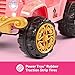 Foot pedal acceleration features a gentle forward and reverse speed 2.5 mph; steering wheel also features buttons for horn and engine sounds