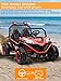 【2-Seater 24V Ride on Car】The 24v ride on utv car equipped with 24V10AH rechargeable battery and 2x200W powerful motors, which can provide more powerful & stable & low noise to ride on different terrains. Give your kids the best experience and up to hours of continuous playtime.