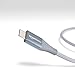 【Design in Details】Nylon braided cable jacket, no worries for fraying, heating, kinking. Non-slip thumb grip, chill when plug. Streamlined metal pieces seamlessly connected, shock-proof. Perfect length for home office setup with an extra Velcro tie for travel. Stylish gray metallic case with a hue of blue.