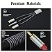 Sturdy Durable: 3.5mm to 2RCA auxiliary stereo Y splitter use Aluminum-Alloy shell, corrosion resistant and soiled, not easy to damage. Fishnet wire exterior offers strength and flexibility, ensure 25000+ bend lifespan.