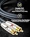 【Flexible and Durability】RCA cord is made of high-quality materials, with a tested 15000+ bend lifespan, double-braided nylon audio cable adding to the durability, flexibility and tangle free. Fully plugged-in connection, works great with Car Stereo, TV, DVD Player, CD Player, Amplifier, Turntable and Speaker System.