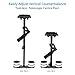Vertical balance can be adjusted by varying amount of counterweights on the base platform & by changing the length of tool-less telescopic central post.