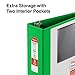 Green view binder is an excellent choice for storing spreadsheets and other wide papers. Three D-Rings keep pages secure. Holds up to 600 sheets for maximized storage. Wide design accommodates letter-sized papers. Durable covers are made of plastic with nonstick surface. Three pockets for organization. Insert a custom spine label for easy identification of the contents.
