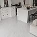 〚Peel and Stick Floor Tile〛: The white marble peel and stick floor tile is made of high quality vinyl, durable and sturdy for heavy traffic area, waterproof, oil-proof, scratches-resistant. Size is 12''x12'', 4 tiles included each box, coverage approx. 4square feet
