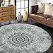 STYLE & SIZE: 47Inch ( 4 ft ) Diameter round shape, sumptuously soft surface, non-skid latex backing, long-wearing edge adds durability to this rug topped with a printed graphic inspired by mandala painting.(NOTE: The pattern is this style as picture, it's grey and green grade,not fade!)