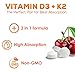 VITAMIN K2 MK7 WITH D3: Cherry Flavored Chewable Tablets For Superior Calcium Absorption - Serving Size K2 225 mcg, D3 6000 IU